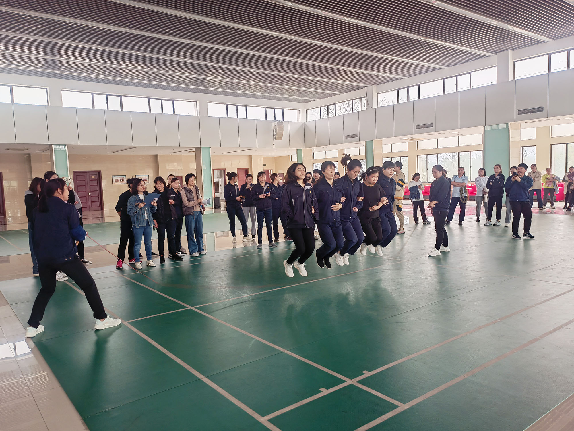 本次“三八”節(jié)系列文體活動設有“單人跳繩”“踢毽子”“7人集體跳繩”三個項目,共有119名女職工積極響應,踴躍參加。各項目比賽過程緊張有序、趣味橫生。參賽隊員們個個精神飽滿,積極拼搏、奮力爭先。特別是體現(xiàn)團隊力量的集體跳繩項目,通過隊友間的有效配合,使大家增強了團結協(xié)作精神和集體榮譽感。