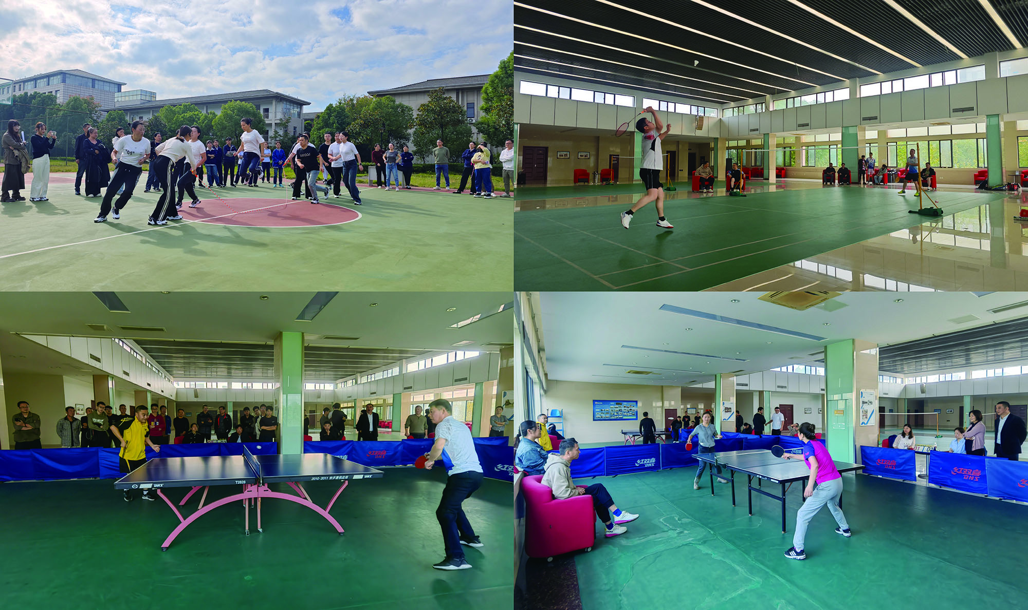 籃球、拔河、十人八字跳繩比賽項目中,隊員們團結(jié)協(xié)作,配合默契,奮勇拼搏。乒、羽比賽項目中,運動員們展現(xiàn)技藝,“乒”出風(fēng)采、誰“羽”爭鋒,盡情享受運動帶來的快樂。